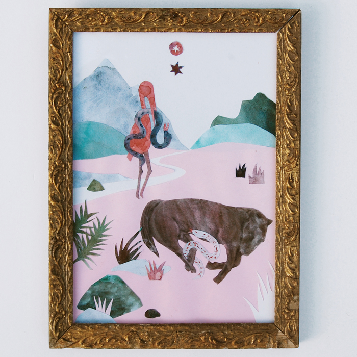Contre les maux de ventre et les digestions dificiles après de bons repas, Aquarelle, papiers découpés, 17x23 cm, 2021