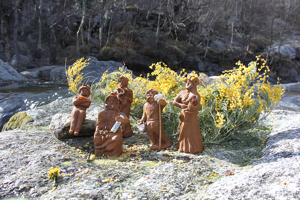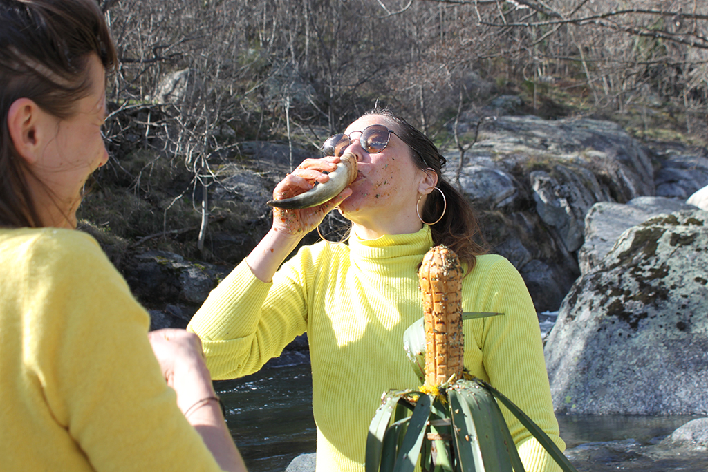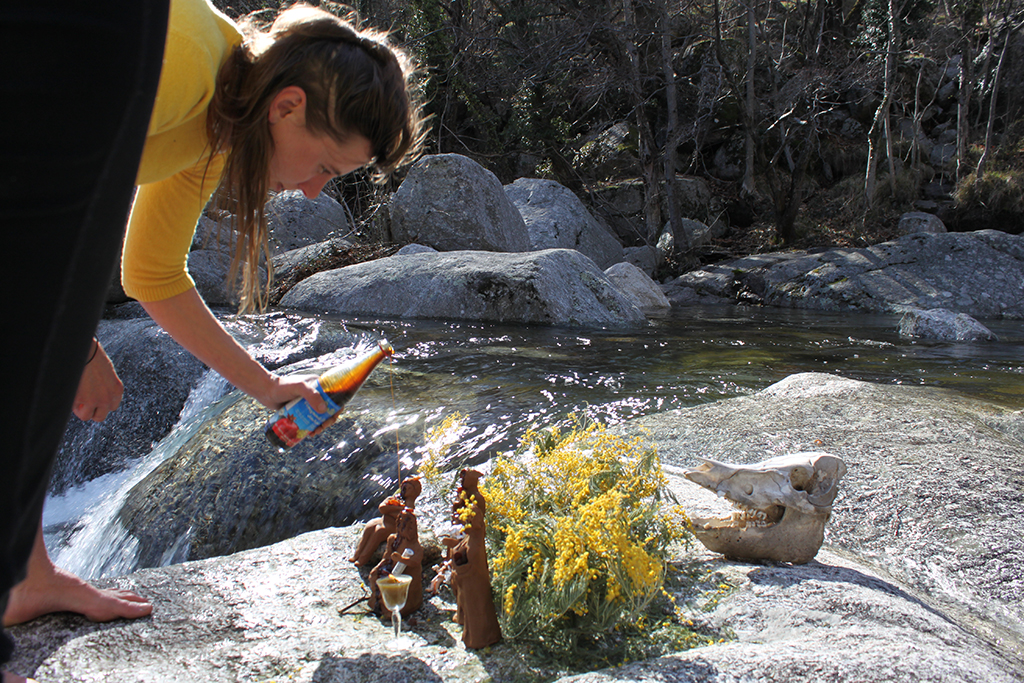 N'oubliez pas que Dove Perspicacius vous propose aussi son "Service cérémonie" sur mesure. Ici, une liturgie alternative conçue pour résoudre des difficultés financières. Du maïs, une corne d'abondance, de la mélasse de grenade et des raisins secs, une Gourdouze et du bois de hêtre durement acquis avec Marine Peixoto et les pieds dans la neige. Et beaucoup de jaune...