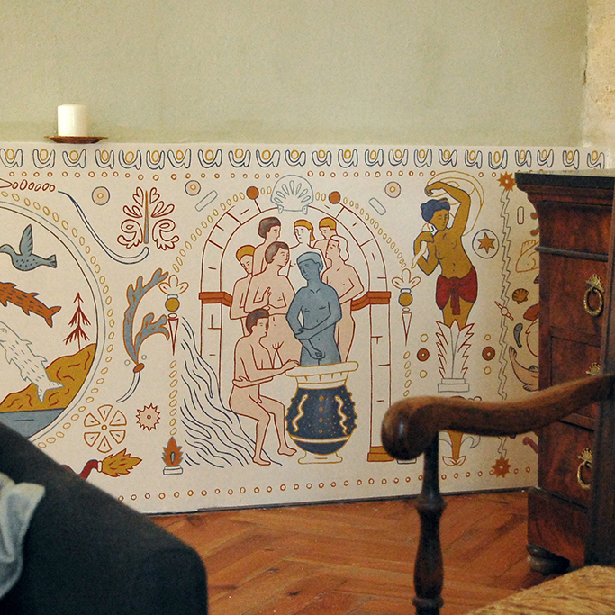 Fresque de la rivière, Réalisée dans une maison particulière au bord de la Dordogne Asques, Novembre 2020
