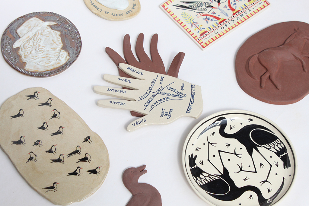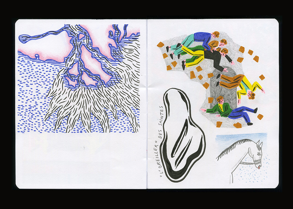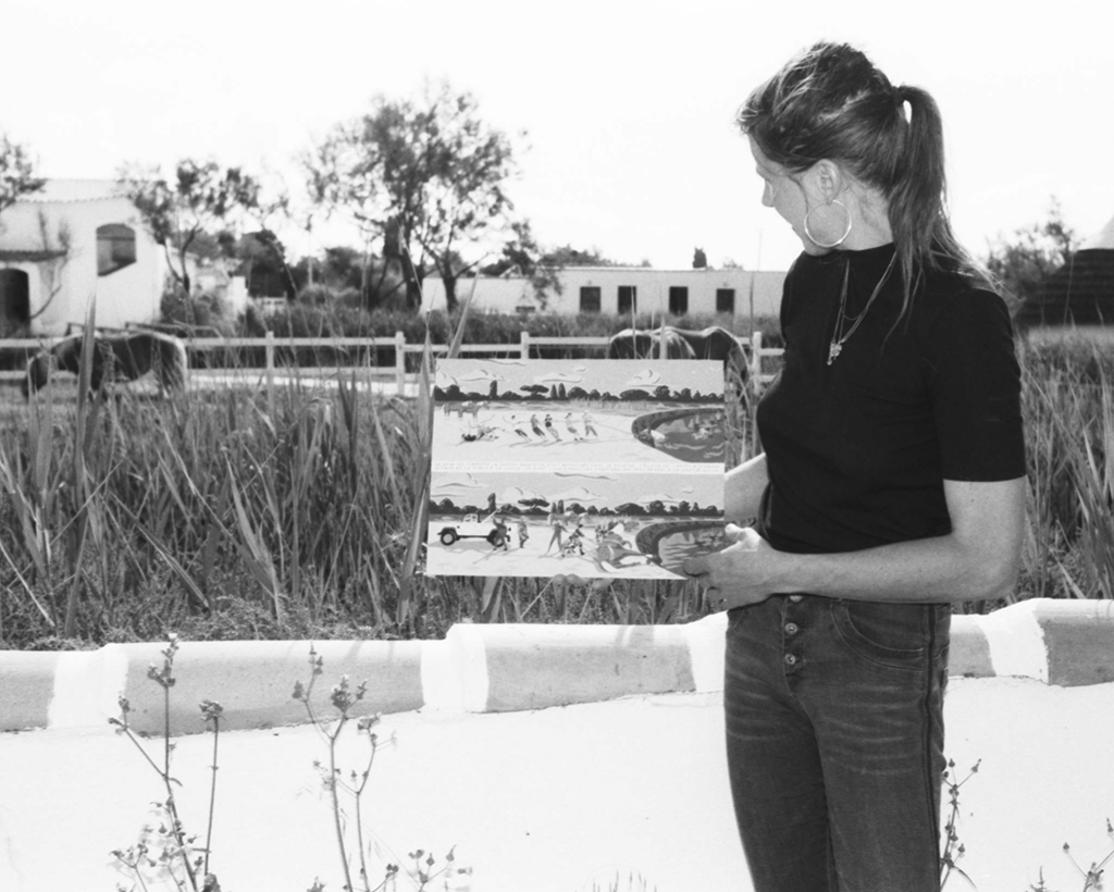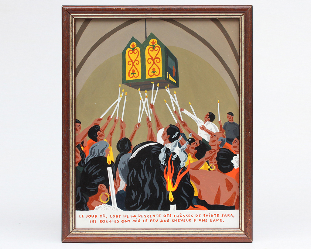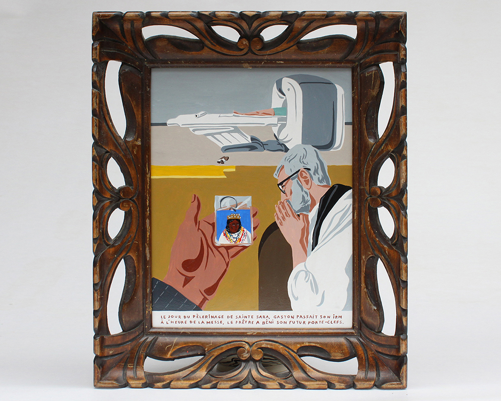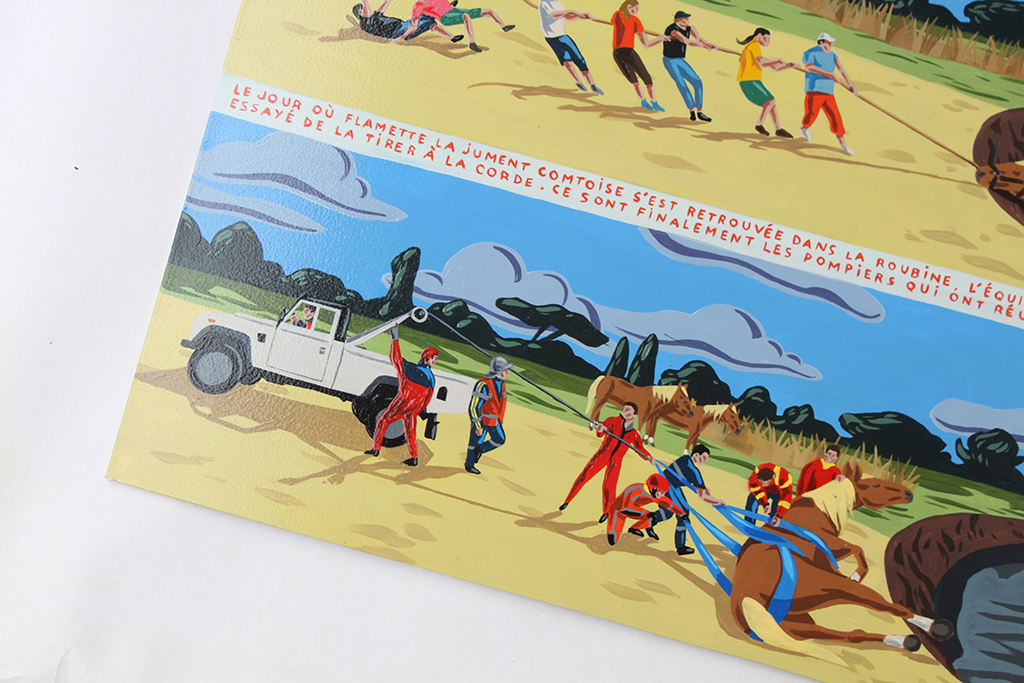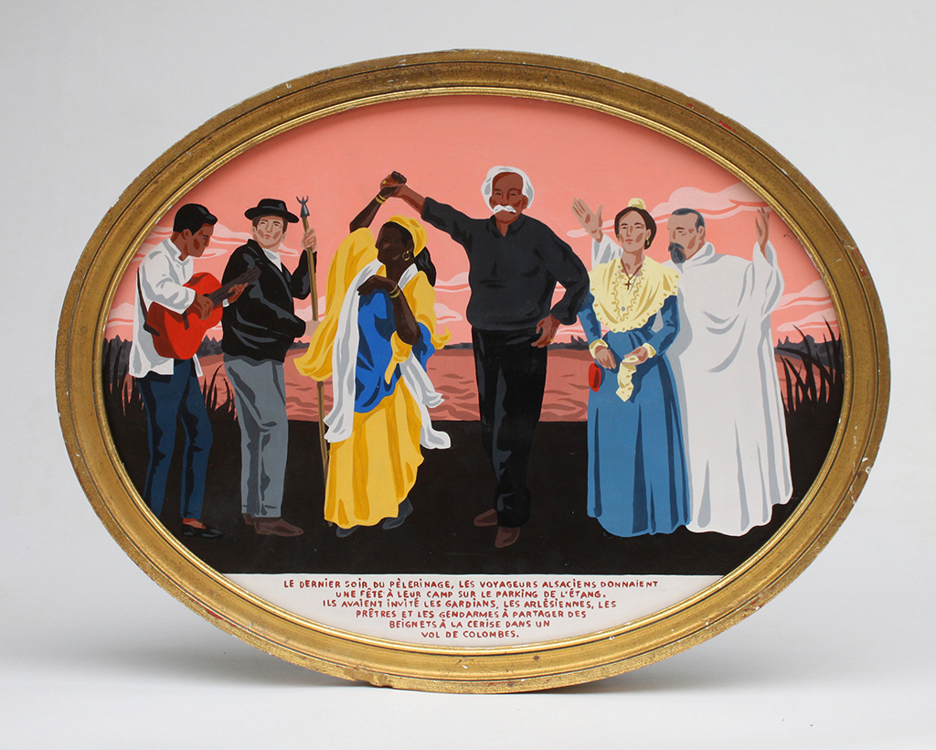 2 semaines en résidence à l'hôtel des Bains Gardians aux Saintes Maries de la Mer pour récolter les histoires du personnel et des pélerins. Elles sont ensuite racontées en atelier sous forme de tableaux et de céramiques. Depuis on peut les voir sur les murs du Pont des Bannes